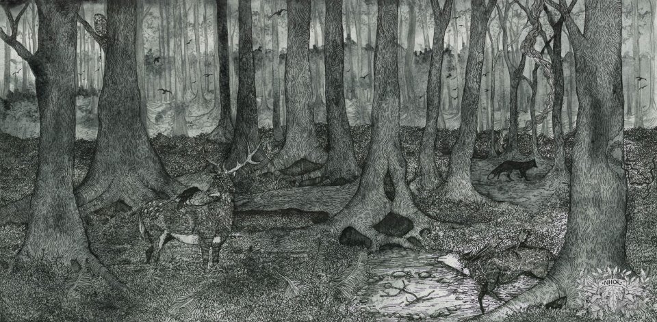 I suppose my influences are anyone who has created art on their own terms. Nhor is my creation; created by an outward reflection of myself, which is mirrored in the waters of an overgrown forest, bringing the stars and trees together in it’s rippling reflection.