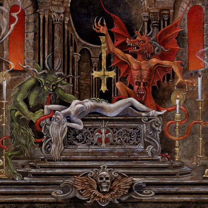 Punk undertones swarm beneath the surface and give this material a furious edge while simplistic hooks spill out of swollen unholy members with perverse urgency. Ledney and John Gelso beat on these guitar riffs mercilessly with blunt though poignant repetition enough to make them stick. The nature of the riffs again is endlessly simplistic, but there is a definite charm and memorable quality to what’s being played so that there is something concrete and enjoyable to keep coming back to when you just want to headbang and get lost in something loud and completely blasphemous. Yes the music is very well written, but the leading edge of this rib splitting spear goes to Ledney’s cancerous and just plain filthy vocals. He sounds like he’s vomiting on gods child over and over again with his reeking black chime that burns with an acidic quality. He unleashes a performance like no other and his determination to keep creating music under the Profanatica banner after all these years is to be commended.